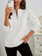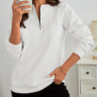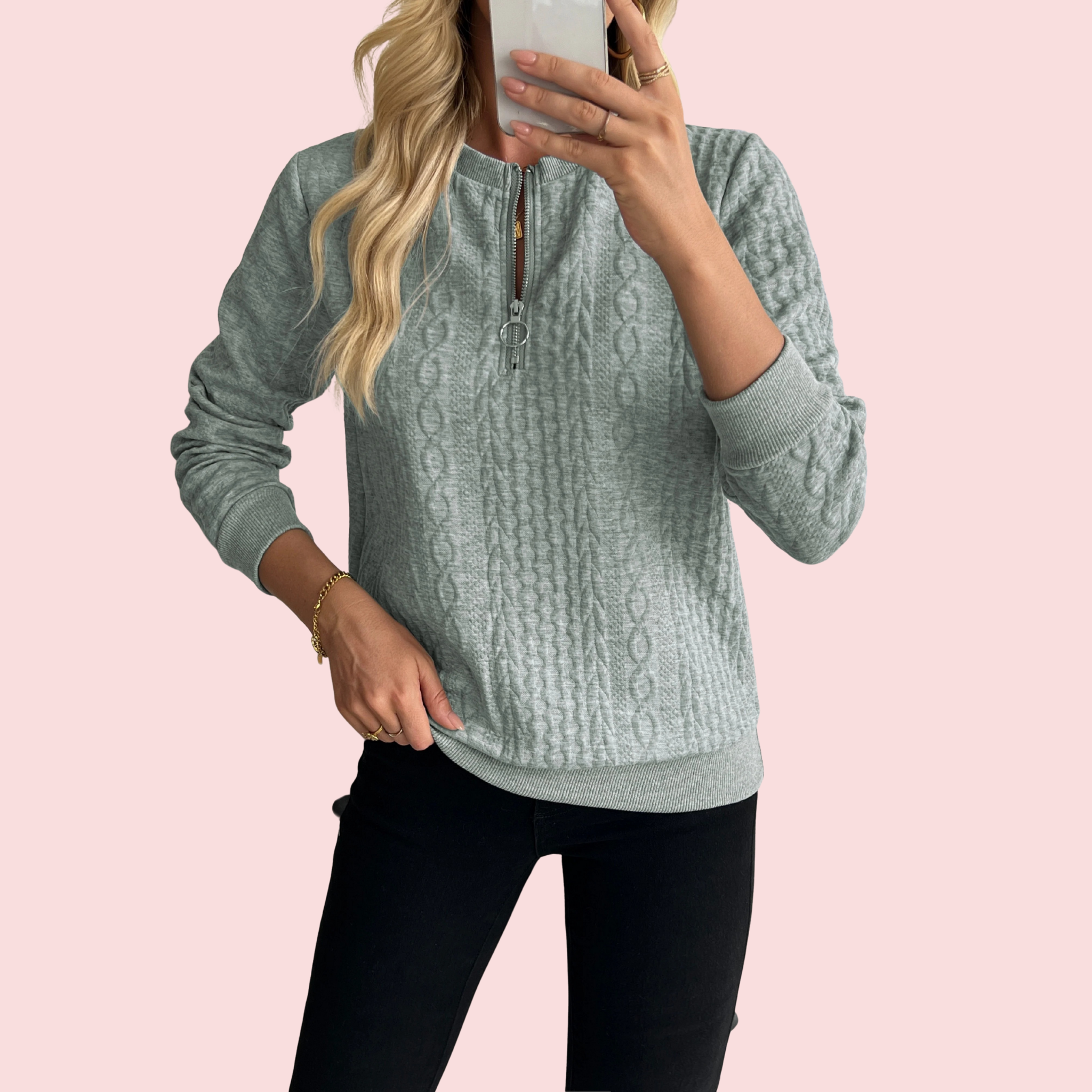Chique Sweatshirt met Halve Rits en Gebreide Kabelstrik – Stijlvol & Comfortabel