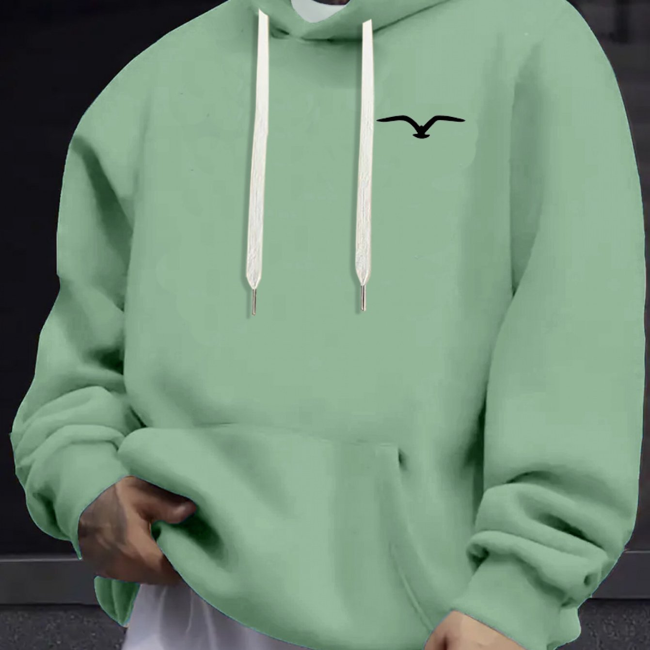 Deze heren hoodie combineert comfort met een uniek design dankzij de stijlvolle vogelsilhouetprint. Gemaakt van licht rekbare, zachte stof met lange mouwen en een capuchon met verstelbaar trekkoord, is deze trui ideaal voor de koelere herfst- en winterdagen. Perfect voor casual, dagelijkse outfits die zowel warm als modieus zijn. De capuchon en comfortabele pasvorm maken het een veelzijdige must-have voor je wintergarderobe.