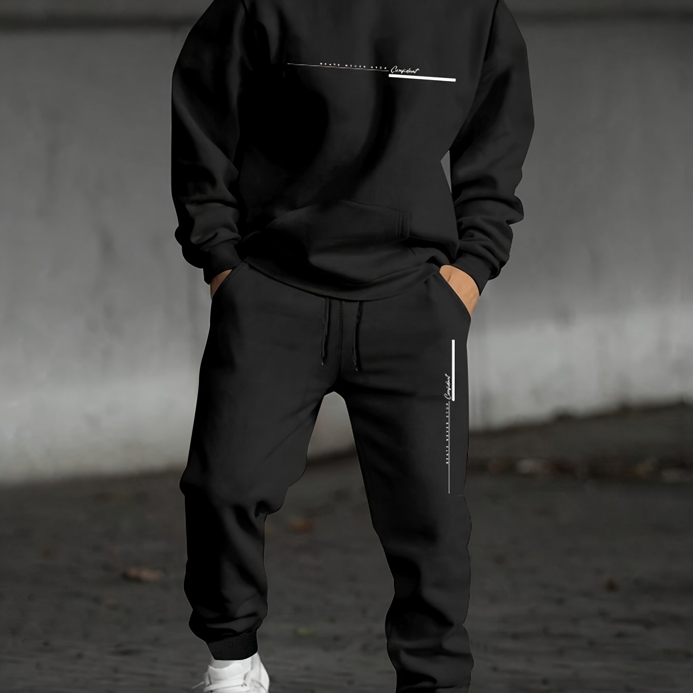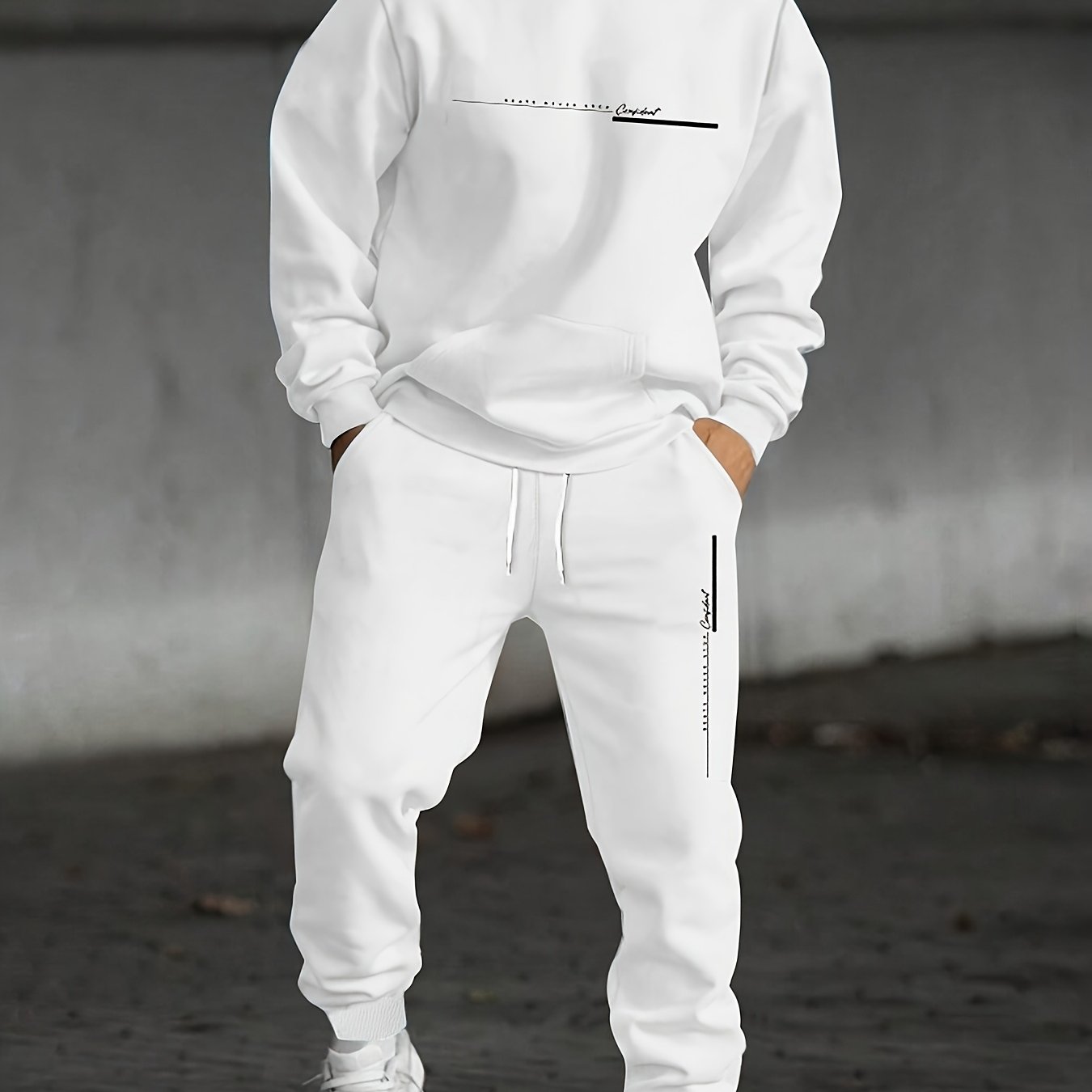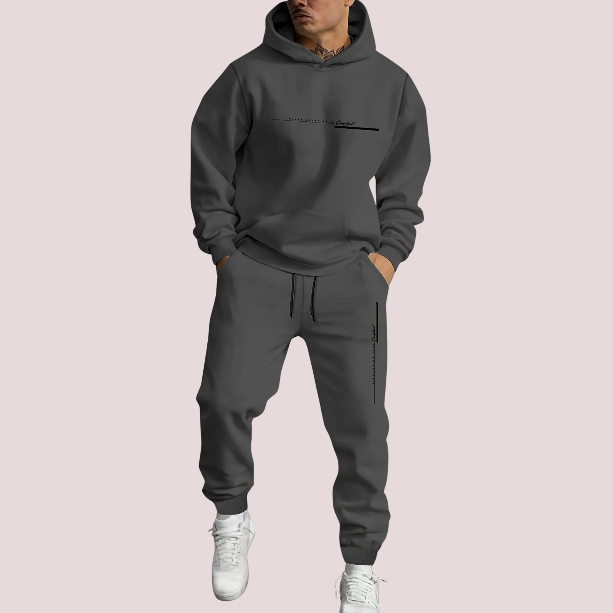 Comfort en stijl komen samen in deze tweedelige heren set, bestaande uit een bedrukte hoodie en een bijpassende joggingbroek. Gemaakt van zachte en ademende materialen, biedt deze set optimale bewegingsvrijheid voor dagelijks gebruik of sportieve activiteiten. De hoodie heeft een capuchon en lange mouwen, terwijl de joggingbroek is uitgerust met een verstelbaar trekkoord en praktische zakken. Perfect voor herfst en winter, deze casual set combineert functionaliteit met een modieuze uitstraling.