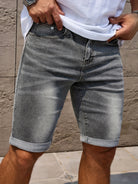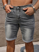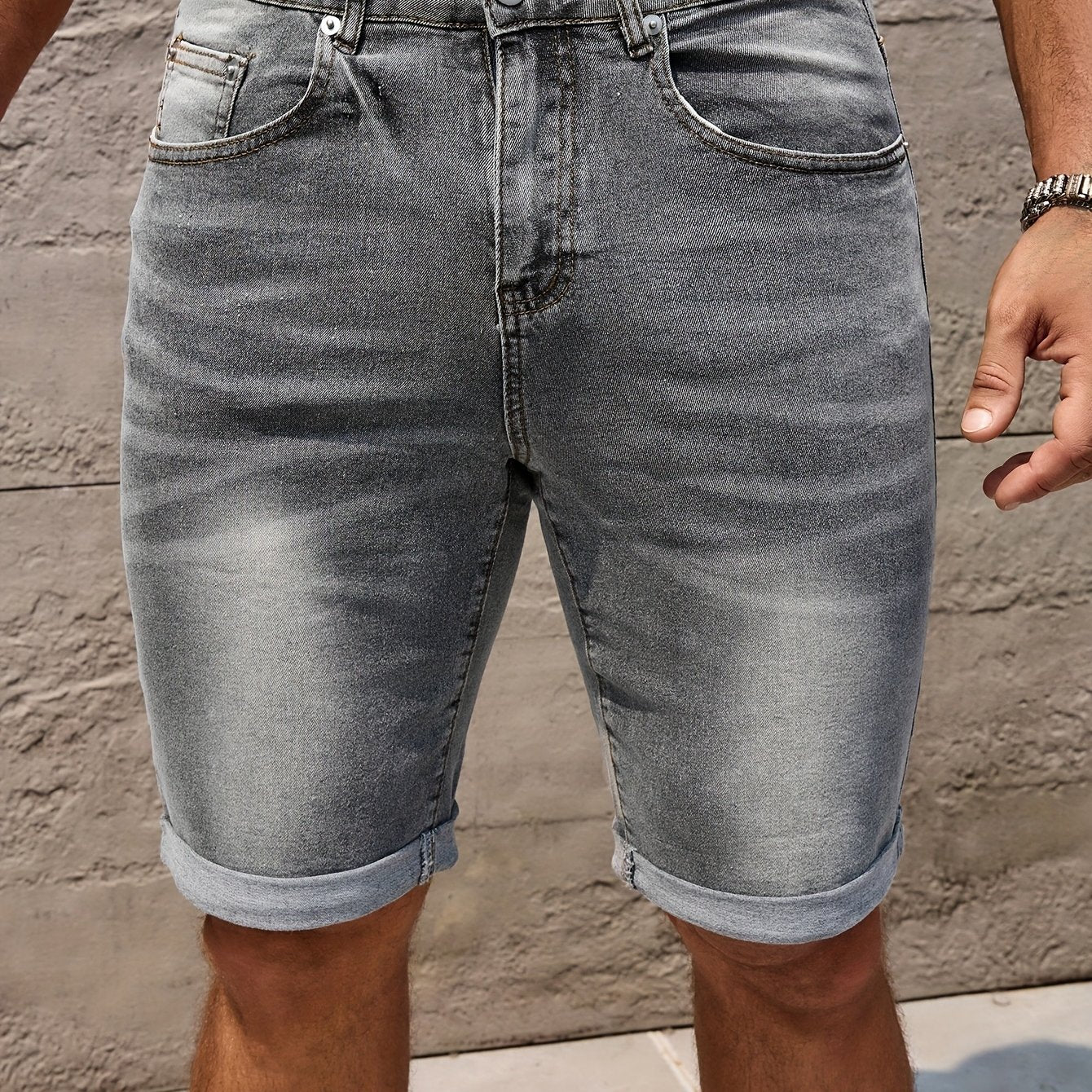 Ontdek ultiem comfort en stijl met deze heren stretch denim shorts. De mid-thigh lengte en comfortabele pasvorm maken ze perfect voor casual wear en streetwear essentials. Uitgevoerd in een trendy gewassen grijze kleur met klassiek zakkenontwerp, zijn deze jeans shorts veelzijdig en makkelijk te combineren. Ideaal voor warme dagen en relaxte looks.