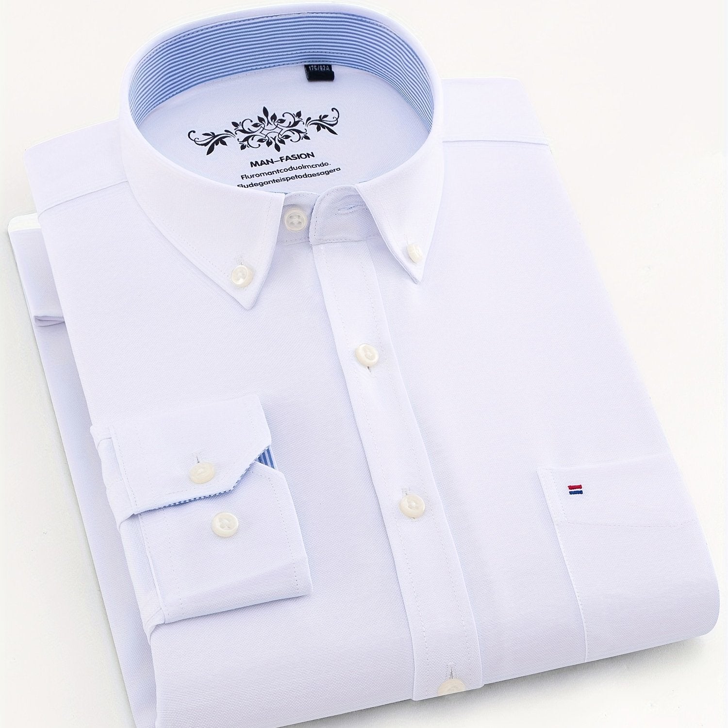 Dit mooie herenoverhemd met lange mouwen combineert klassieke stijl met veelzijdigheid. Gemaakt van een duurzame 60% katoenmix met niet-rekbare stof, biedt het een comfortabele pasvorm en uitstekende ademendheid voor lente en herfst. Het overhemd heeft een nette knoopsluiting en is perfect voor zakelijke gelegenheden, evenementen of casual dagelijks gebruik. Dankzij het tijdloze ontwerp en hoogwaardige materialen is dit overhemd een duurzame toevoeging aan elke herengarderobe.