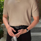 Ontdek het perfecte all-season poloshirt voor mannen in 2024. Dit beige poloshirt met korte mouwen combineert een minimalistische stijl met een comfortabele regular fit en medium stretch. Gemaakt van een fijne gebreide constructie met een subtiel klein gat, biedt het ademend vermogen zonder in te boeten aan elegantie. Geschikt voor casual of iets nettere gelegenheden, is dit poloshirt een veelzijdige must-have voor je garderobe.