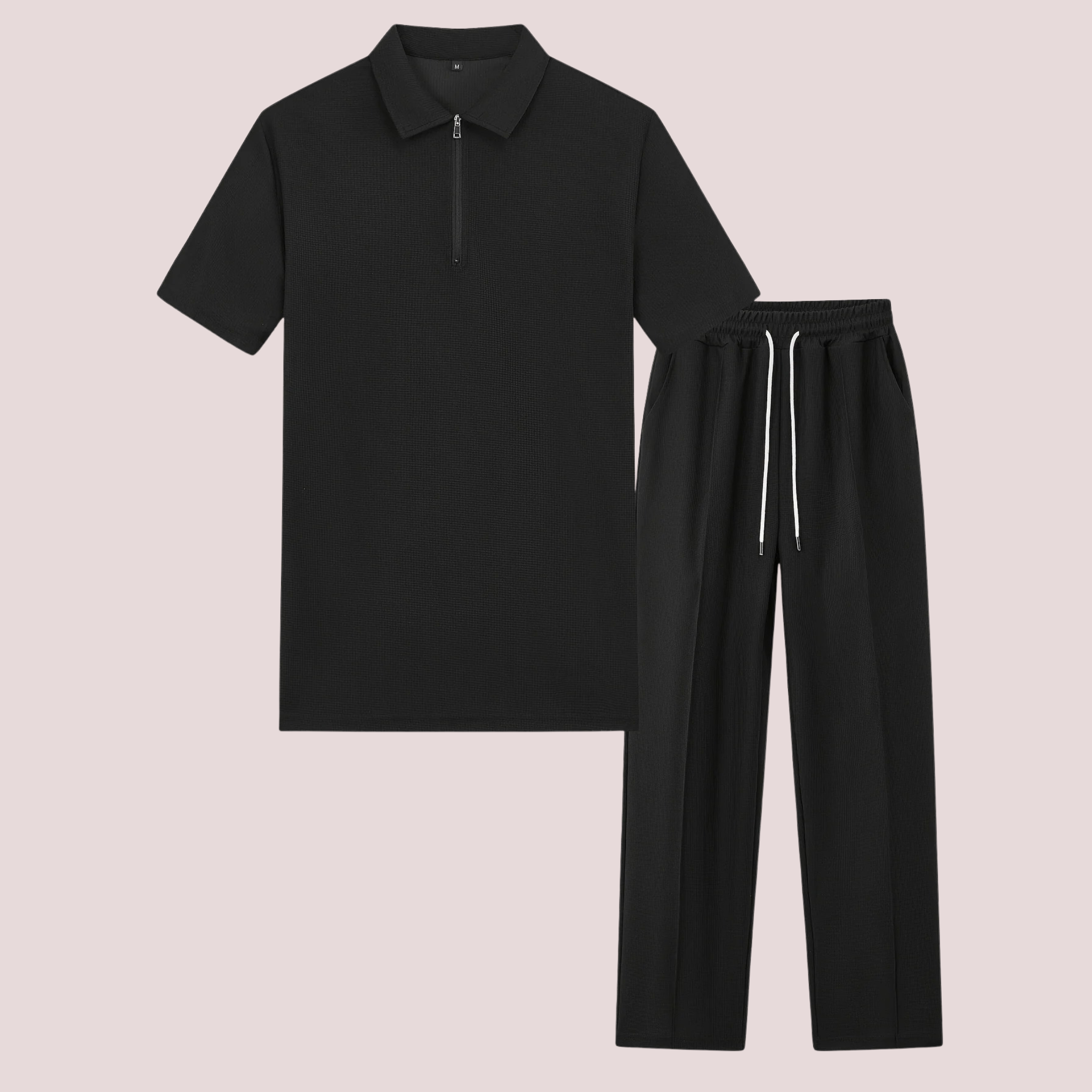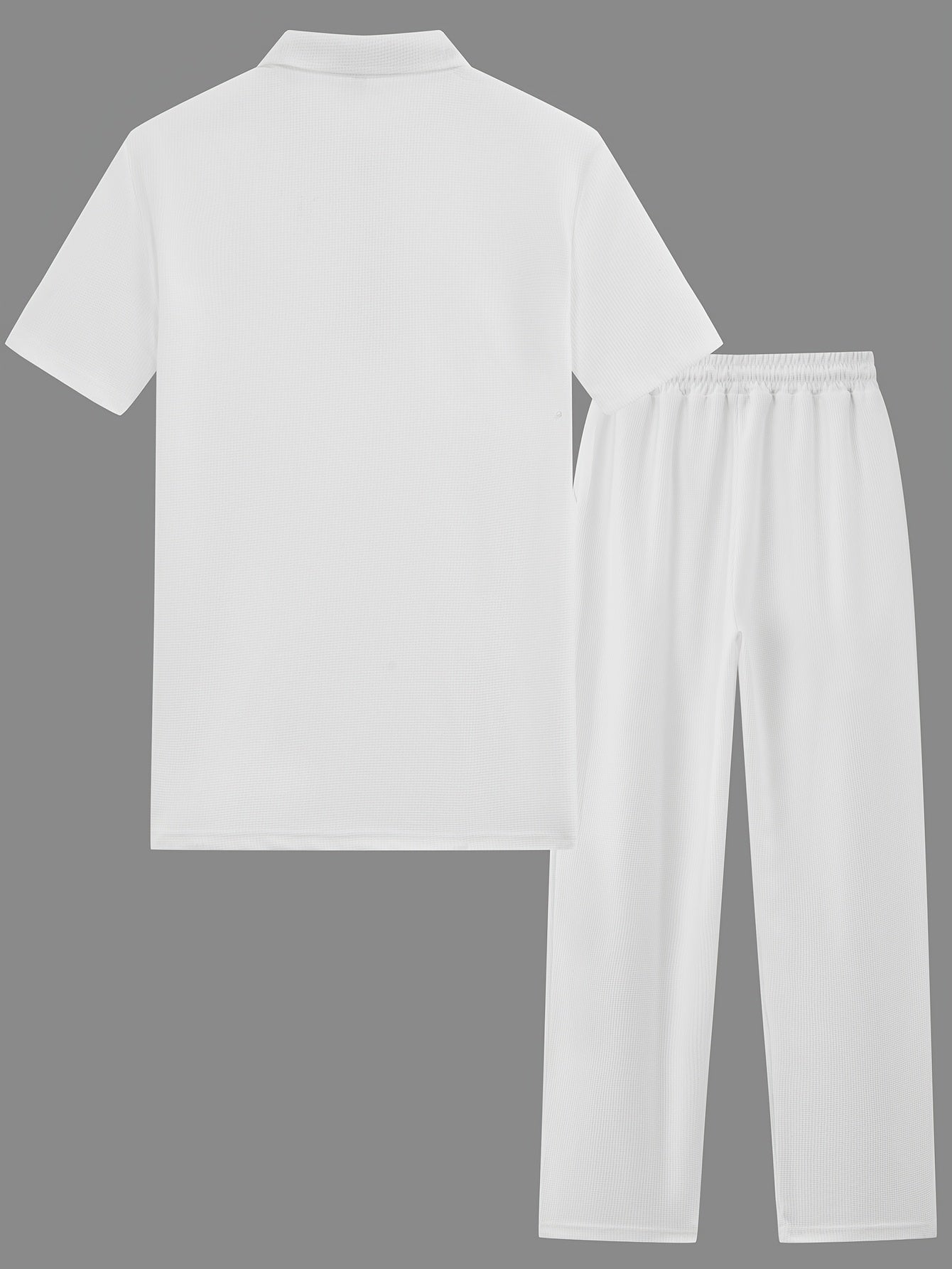 Stijlvol en comfortabel, dit 2-delige herenpak is perfect voor dagelijks gebruik in de lente en zomer. Het geruite korte mouwen overhemd wordt gecombineerd met een bijpassende broek met verstelbaar trekkoord voor een relaxte pasvorm. Ideaal voor casual uitjes, vakanties of zomerse evenementen.
