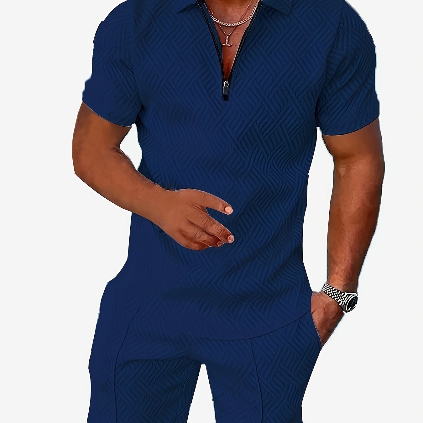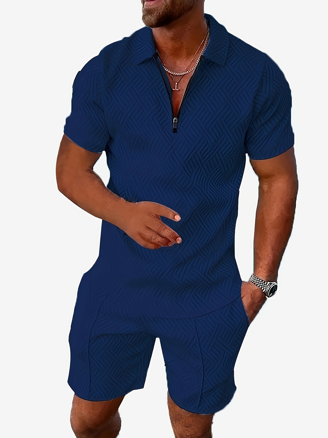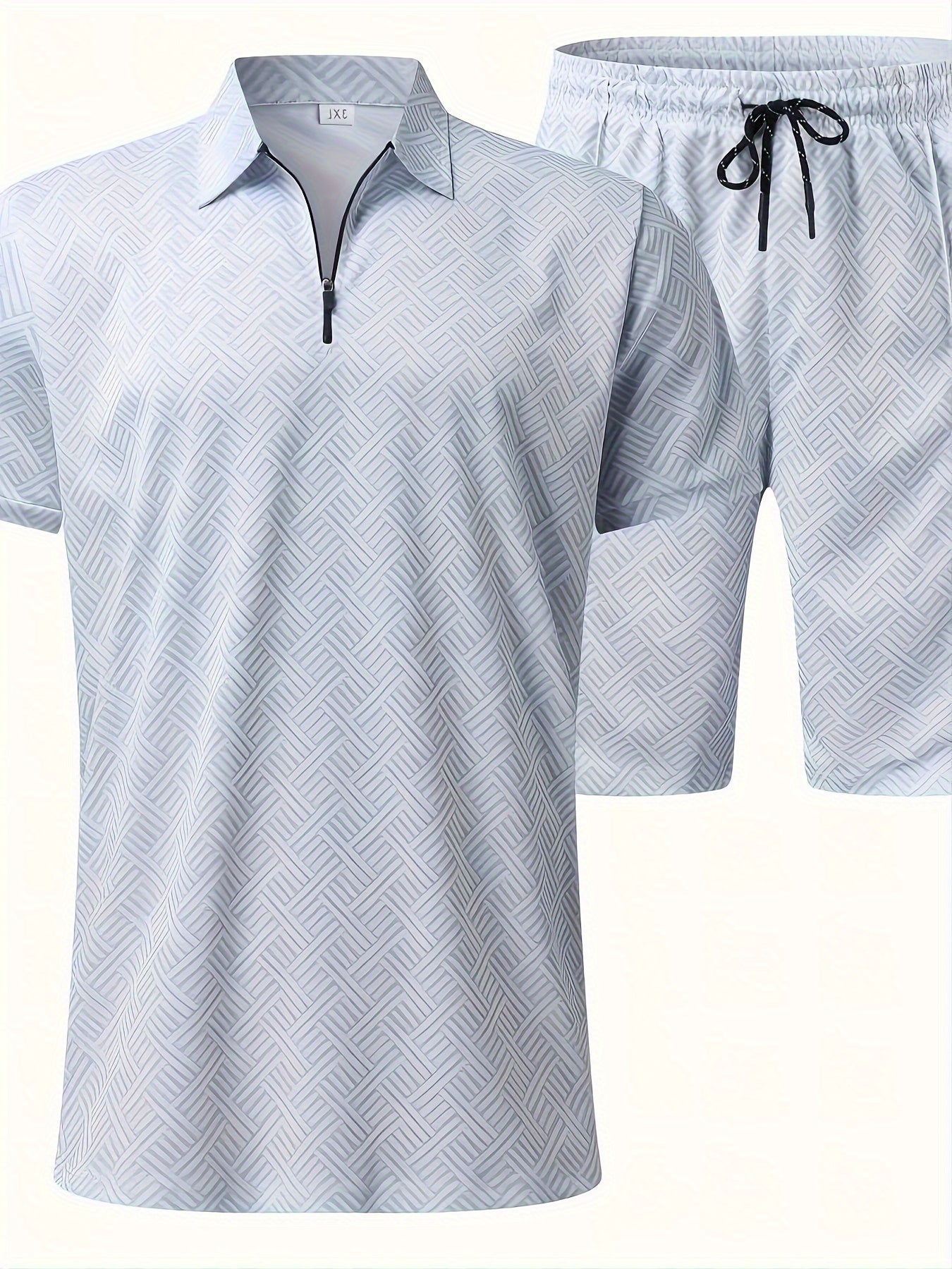Deze stijlvolle 2-delige heren zomer co-ord set is perfect voor vakanties, stranddagen en zomerse evenementen. Het korte mouwen shirt met rits en reverskraag is voorzien van een volledige digitale print die zorgt voor een moderne, opvallende look. De bijpassende shorts maken de outfit compleet voor een moeiteloze, gecoördineerde stijl.