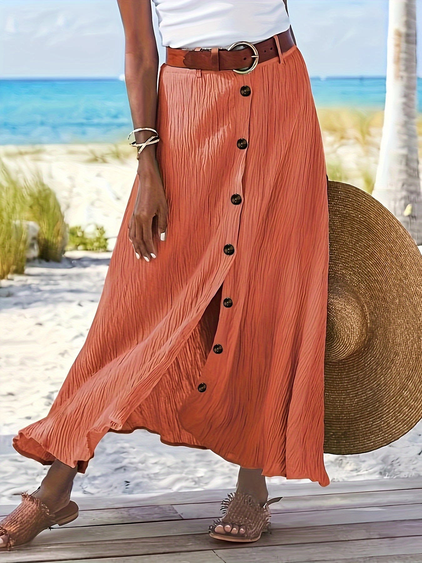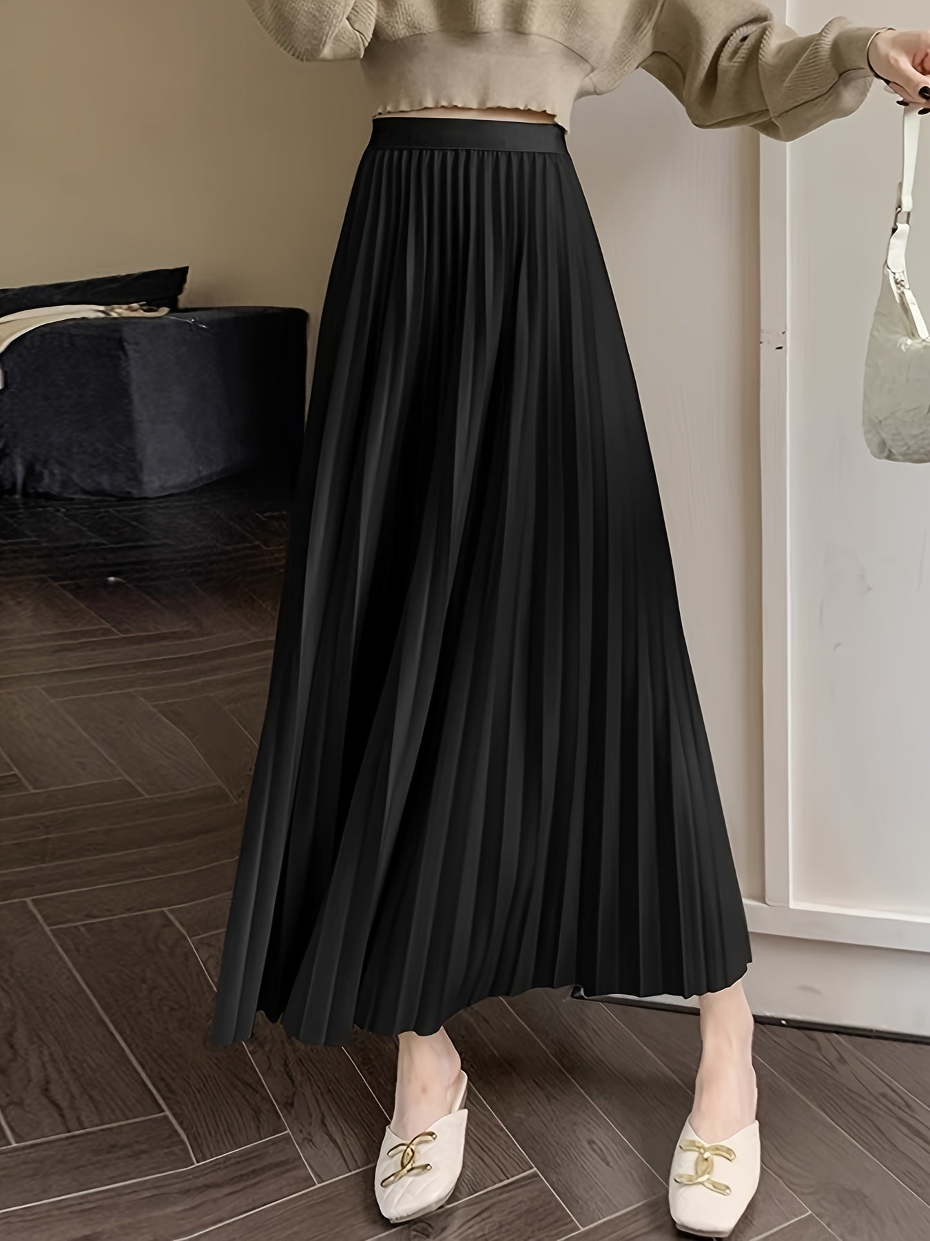 High-Waisted Geplooide Lange Rok