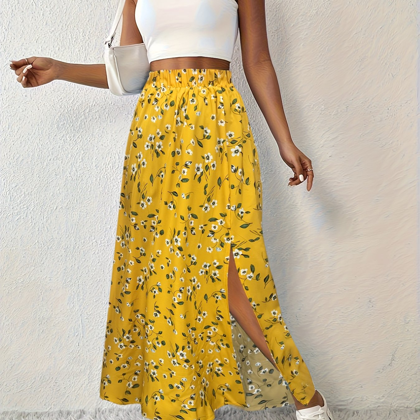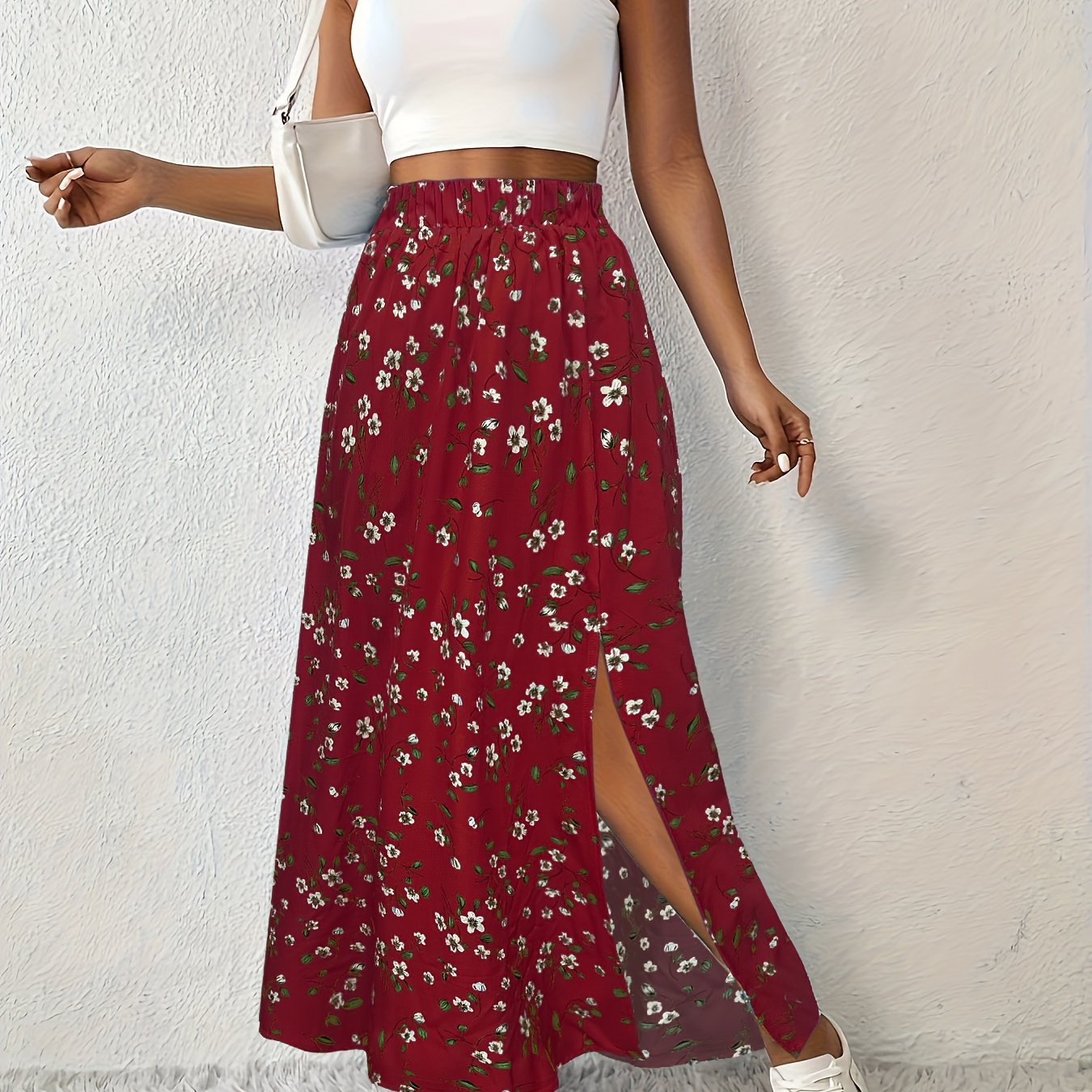 Details: Hoge taille, zijdelingse spleet, bloemenprint