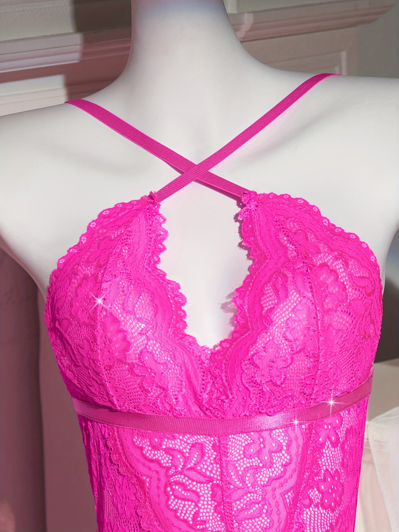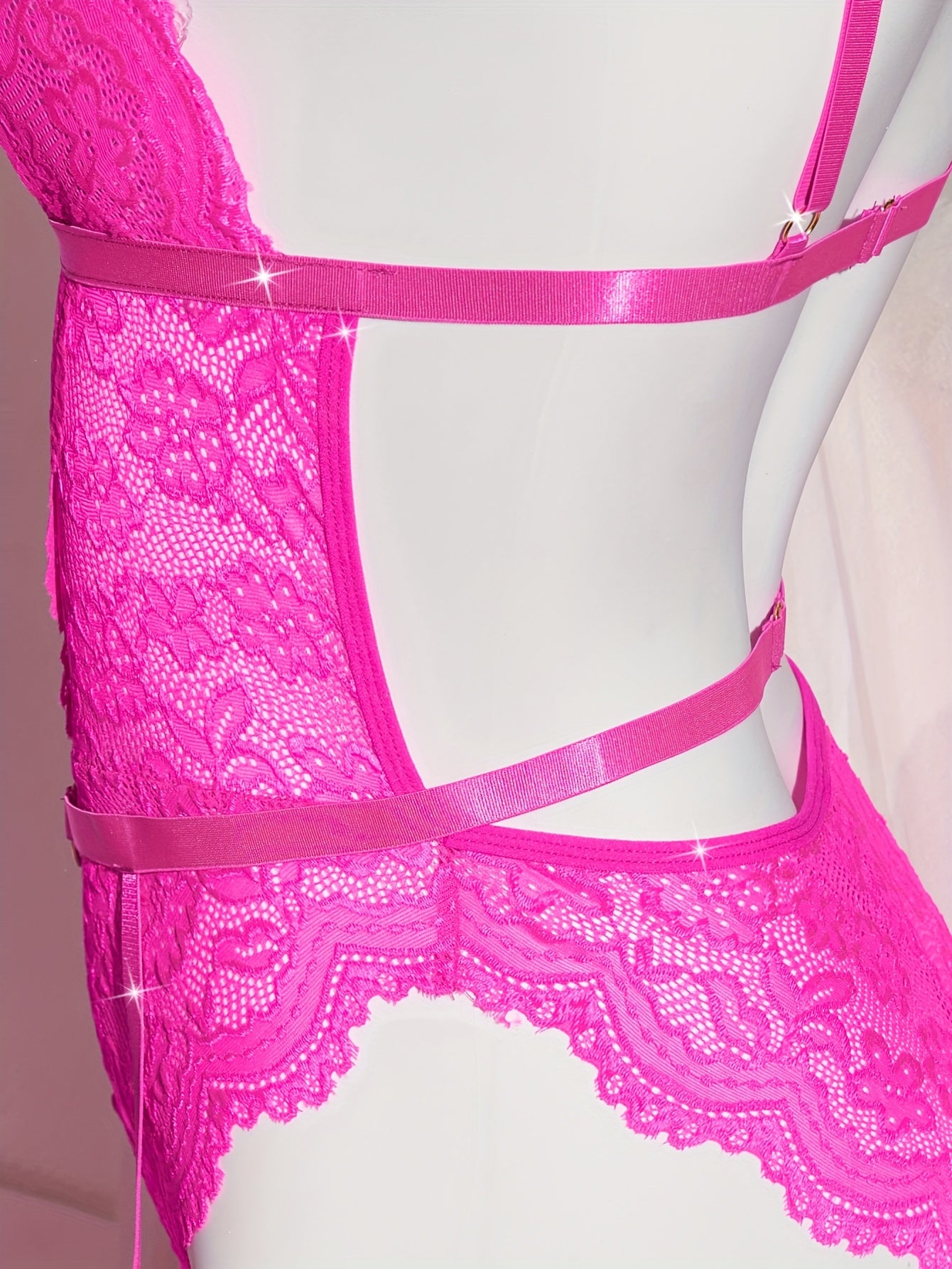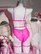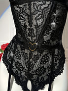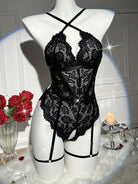Deze 2-delige bloemenkant lingerie set combineert romantiek met verleiding. De hartvormige, rugloze teddy accentueert het lichaam op elegante wijze, terwijl het fijne bloemenkant zorgt voor een luxe en vrouwelijke uitstraling.