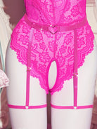 Het open kruis ontwerp en de bijpassende decoratieve jarretelgordel geven de set een speelse en sensuele touch. De zachte, elastische stof sluit mooi aan op het lichaam en biedt comfort zonder in te leveren op stijl. Perfect voor bijzondere momenten of om jezelf extra zelfverzekerd te voelen.