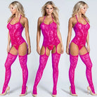 Voeg een verleidelijke en elegante touch toe aan je lingeriecollectie met deze mesh fishnet bodystocking met jarretels. Het fijne netpatroon gecombineerd met een florale print zorgt voor een vrouwelijke en sensuele uitstraling.