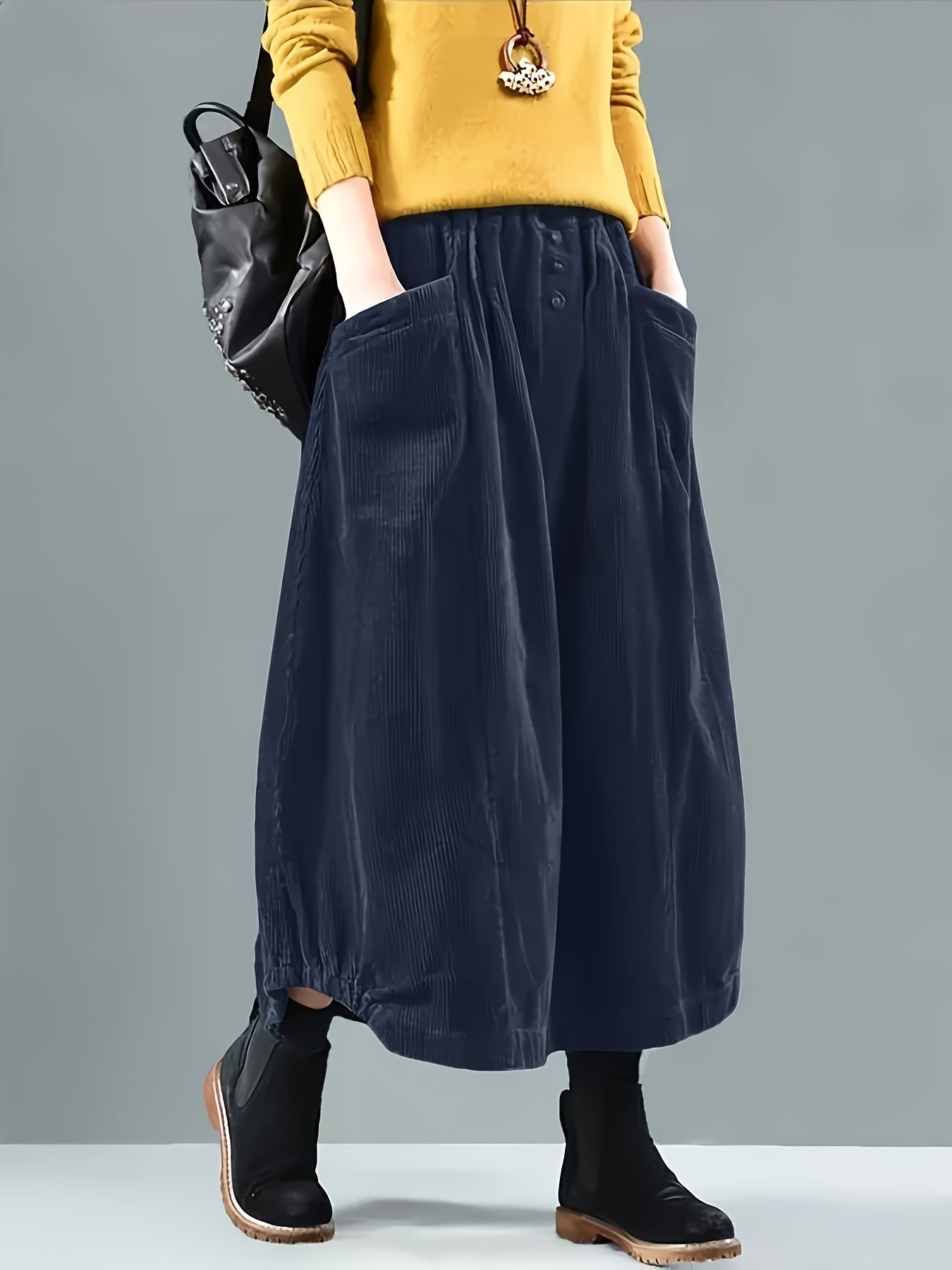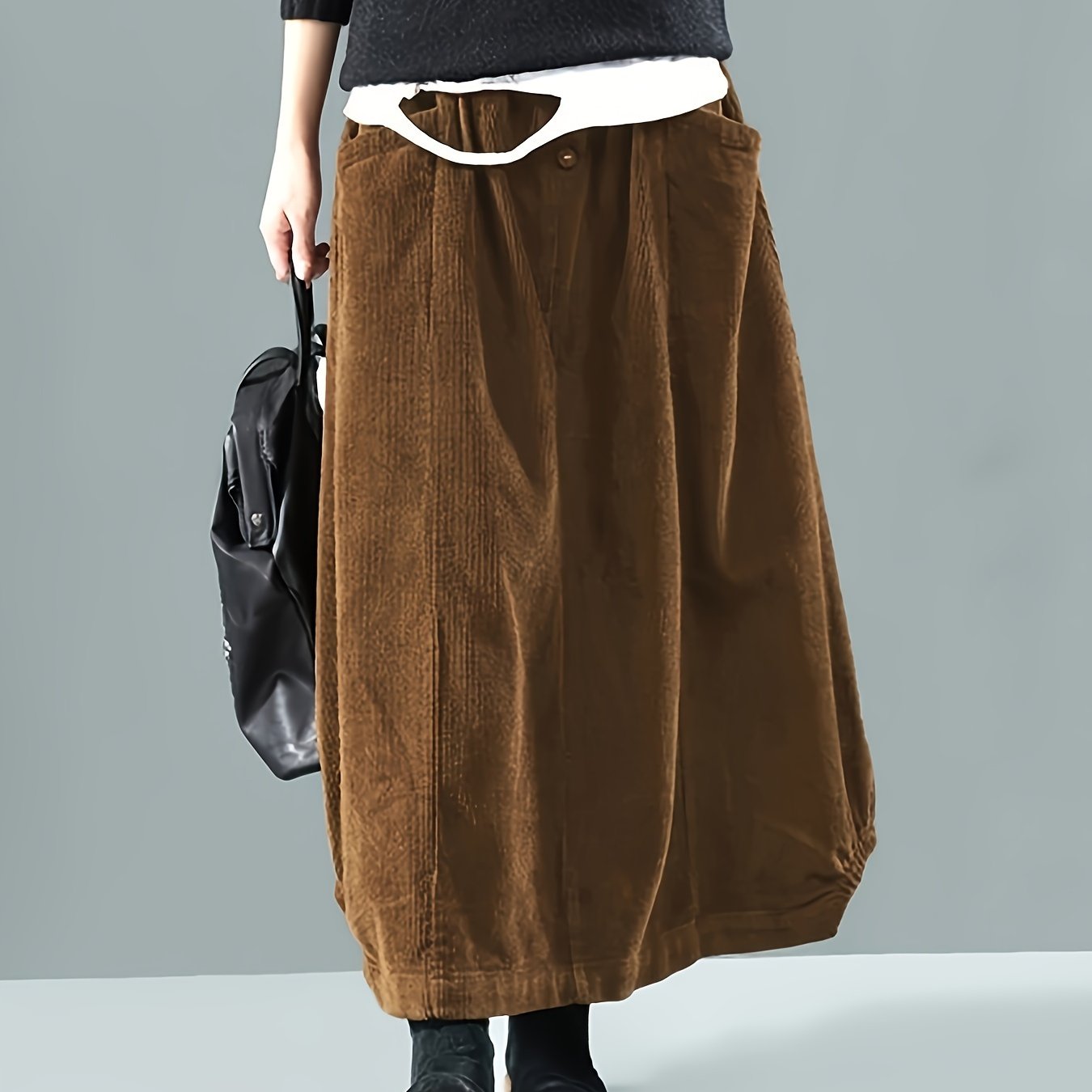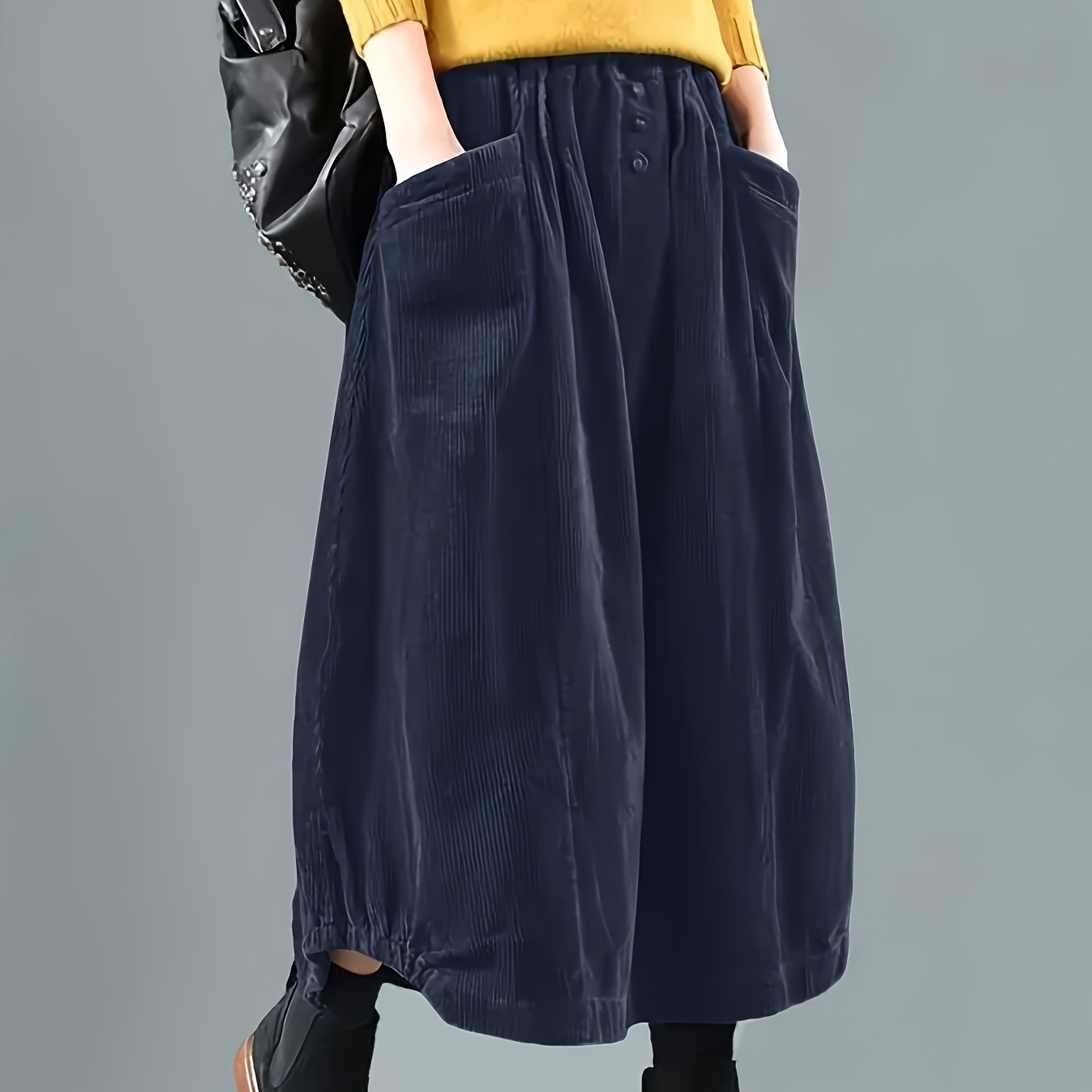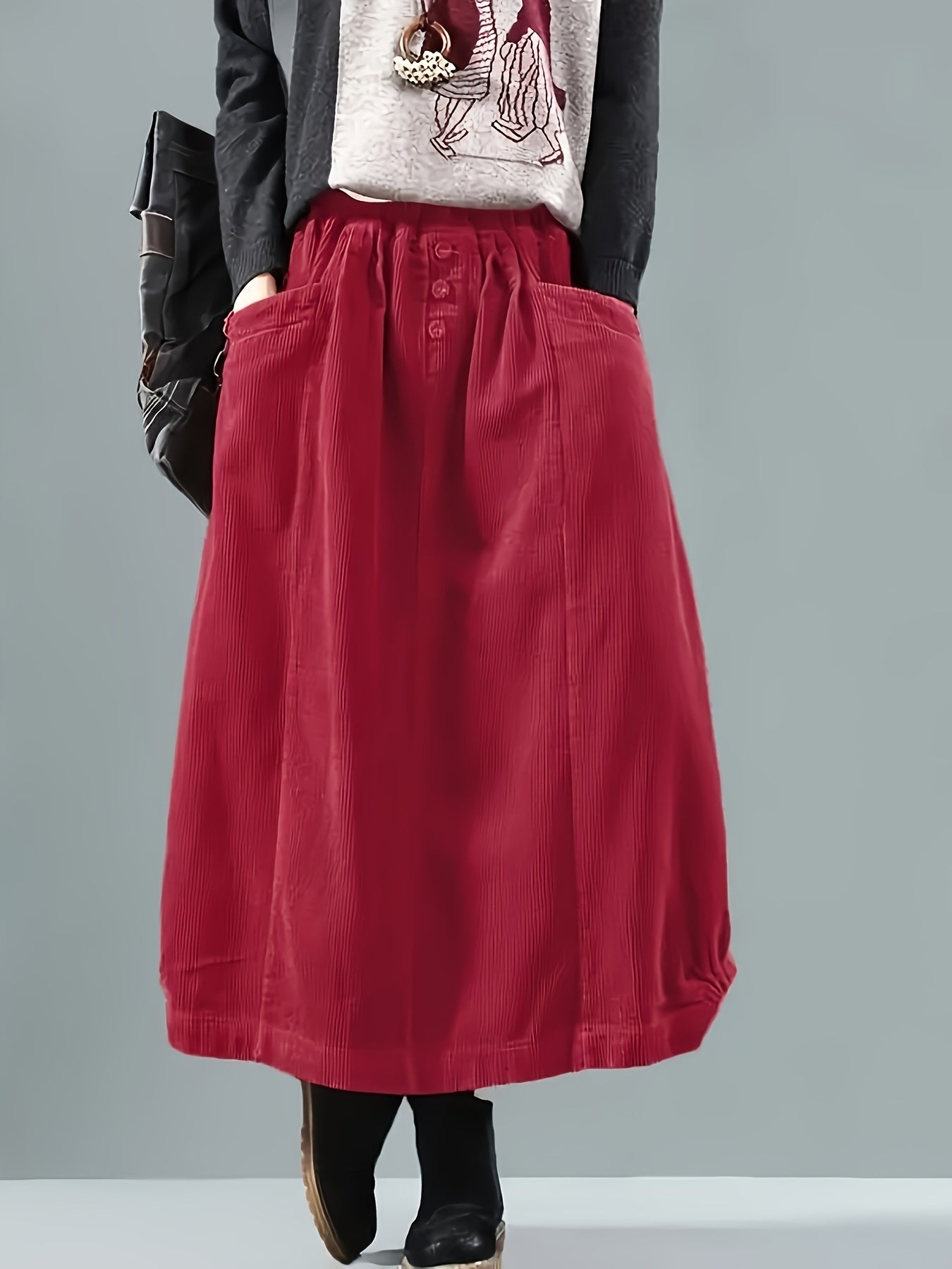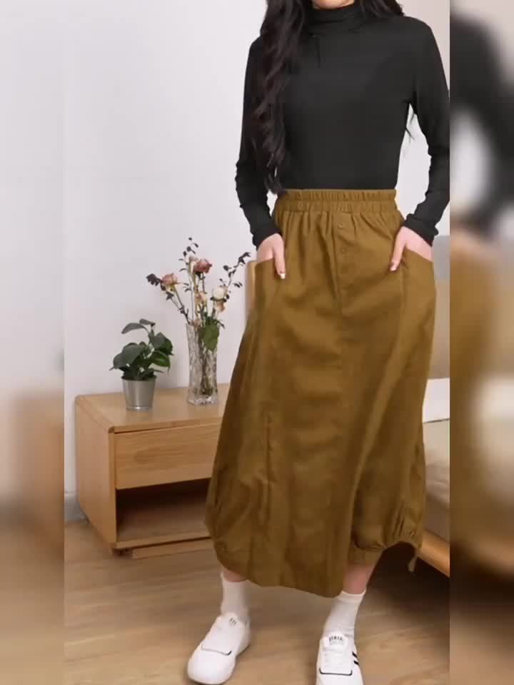 Deze casual coconrok voor dames is perfect voor lente en herfst. Gemaakt van 100% polyester, met een elastische taille voor optimaal draagcomfort. De stijlvolle knoopdetails en dubbele zakken voegen een praktisch én modieus element toe aan je dagelijkse look.