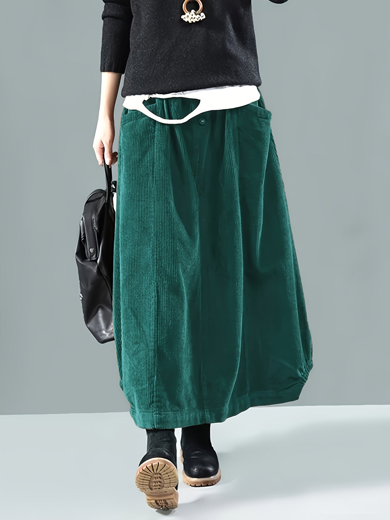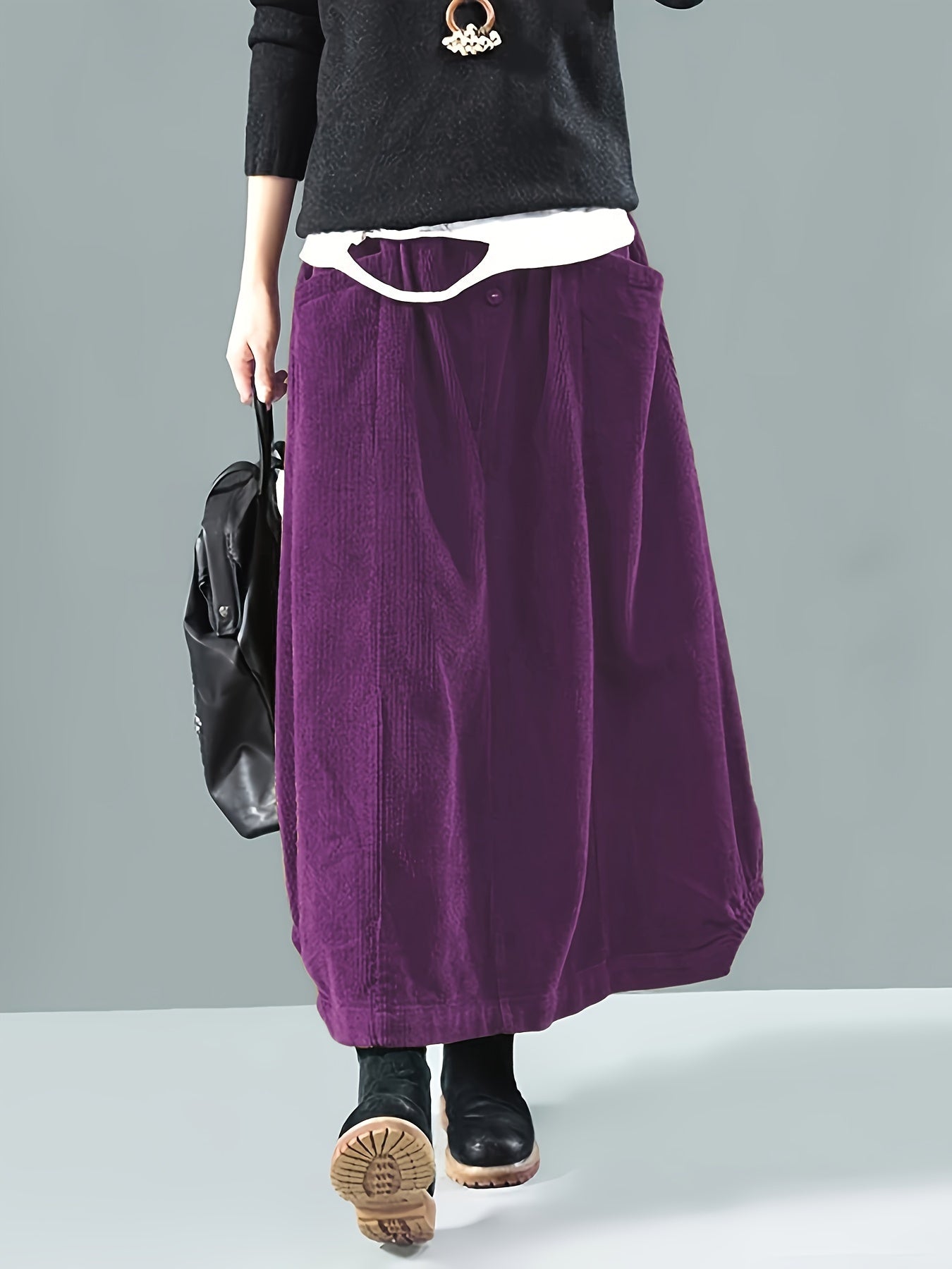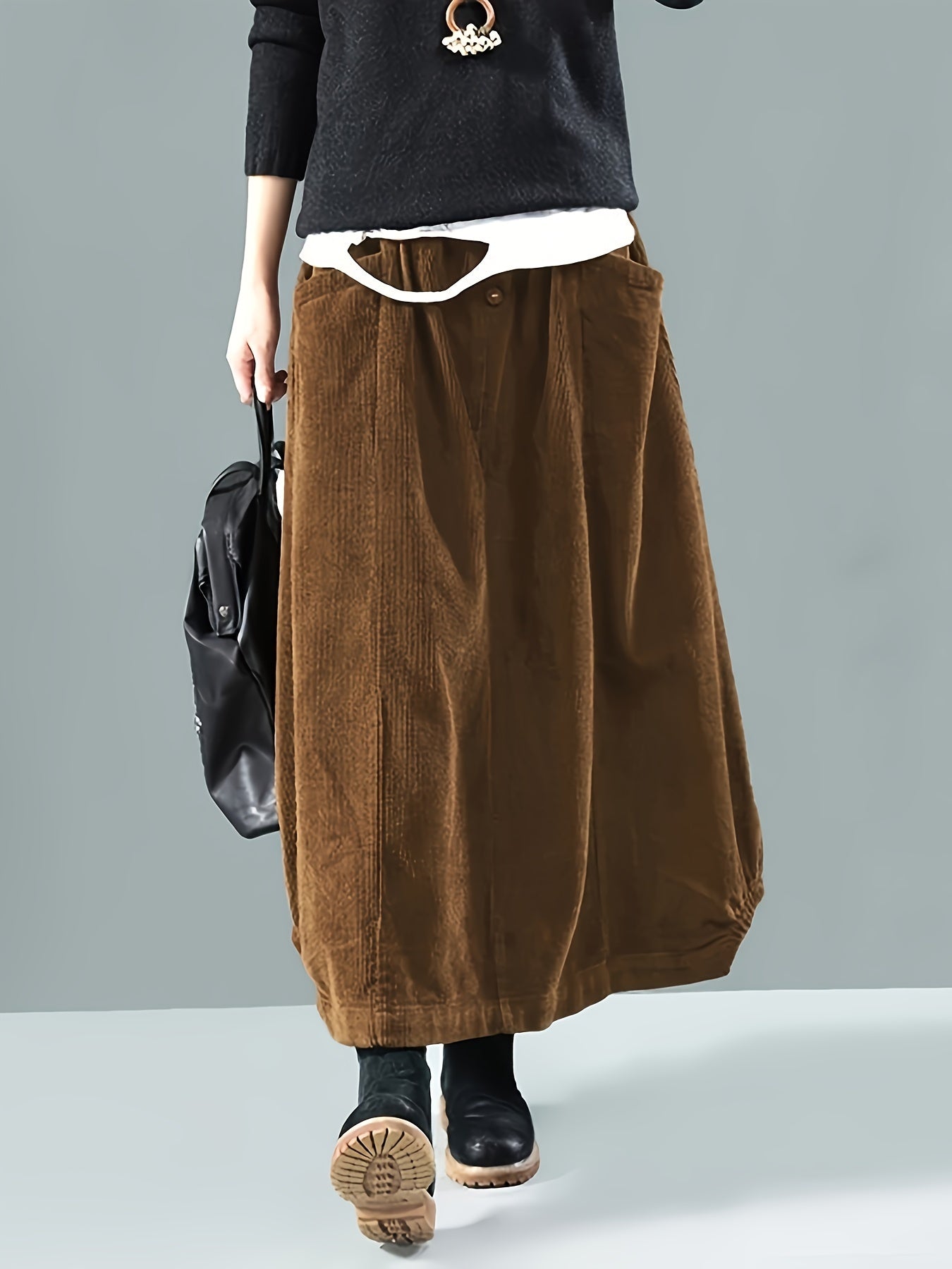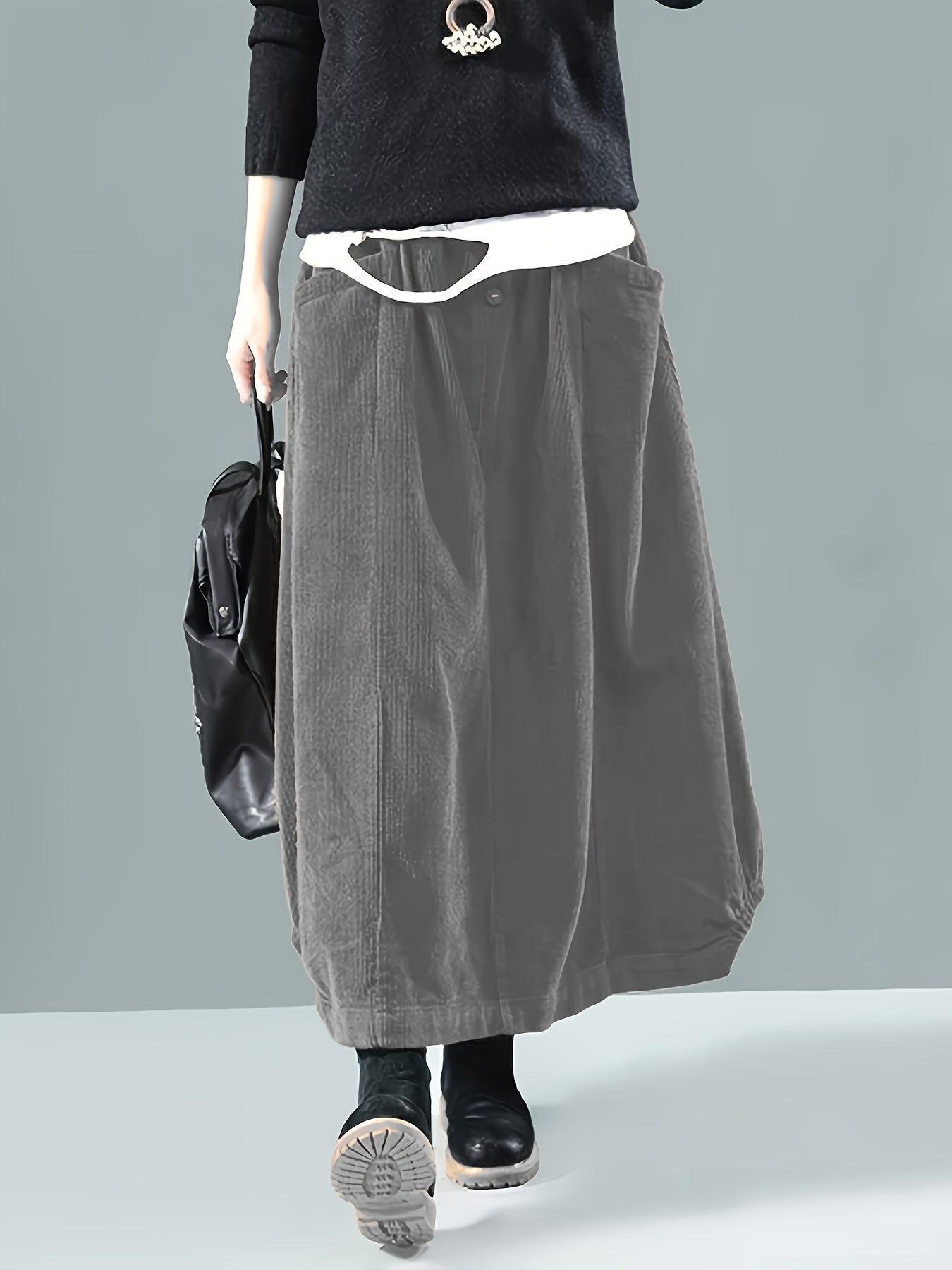 Deze casual coconrok voor dames is perfect voor lente en herfst. Gemaakt van 100% polyester, met een elastische taille voor optimaal draagcomfort. De stijlvolle knoopdetails en dubbele zakken voegen een praktisch én modieus element toe aan je dagelijkse look.