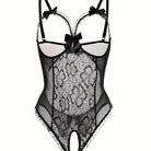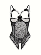 Deze sexy bodysuit voor vrouwen combineert verfijnde elegantie met een krachtige, vrouwelijke uitstraling. Het gedetailleerde kantwerk met bloemendetails geeft de bodysuit een luxe look, terwijl het open kruis ontwerp zorgt voor een sensuele en gedurfde touch.